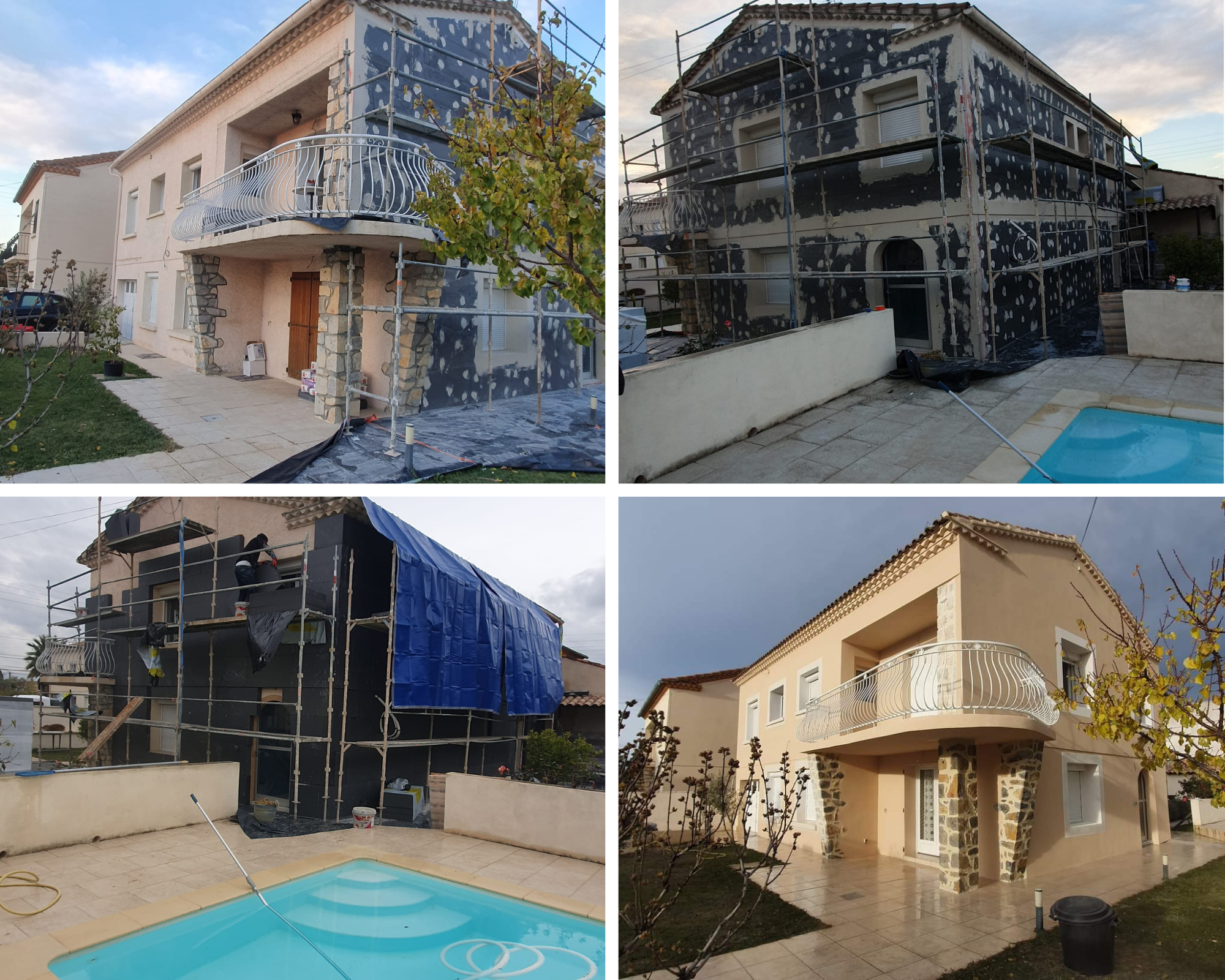 Rénovation d’une villa avec pose isolation polystyrène gris de 120 mm avec finition RPE.